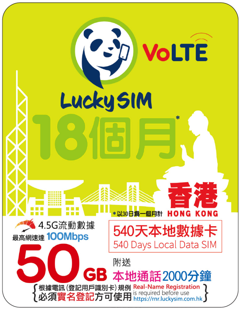 - 使用前必須先完成實名登記:rnr.luckysim.com.hk