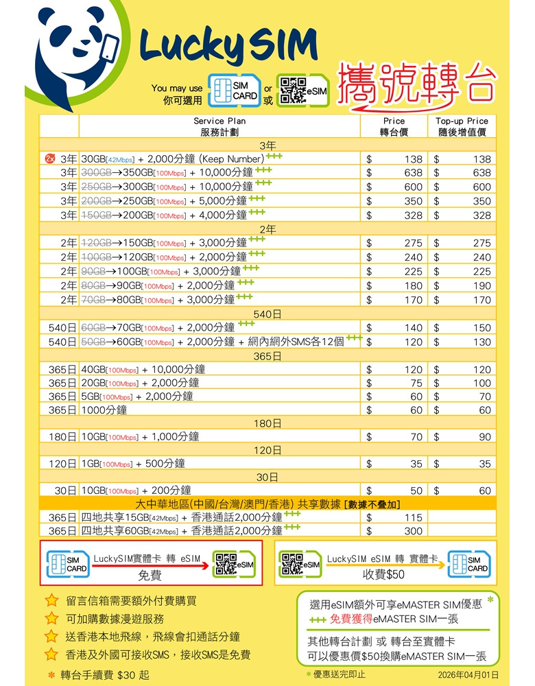 立即前往附近的LuckySIM合作伙伴辦理轉台手續!